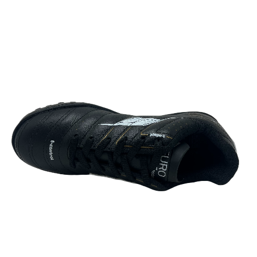 Los botines de papi fútbol Euro Soccer están diseñados para ofrecer máximo rendimiento en superficies duras como cemento o césped sintético fibrilado. Fabricados en cuero genuino, combinan durabilidad, sensibilidad al balón y comodidad, brindando un ajuste progresivo que se adapta a la forma del pie. Su capellada reforzada aumenta la resistencia al desgaste, mientras que la suela de goma de alta densidad con tapones bajos garantiza excelente tracción, agarre y estabilidad lateral. Incorporan plantilla acolchada y forro suave, reduciendo el impacto y mejorando el confort durante todo el juego. Livianos, resistentes y precisos, son ideales para jugadores que buscan control, respuesta y confianza en cada jugada.