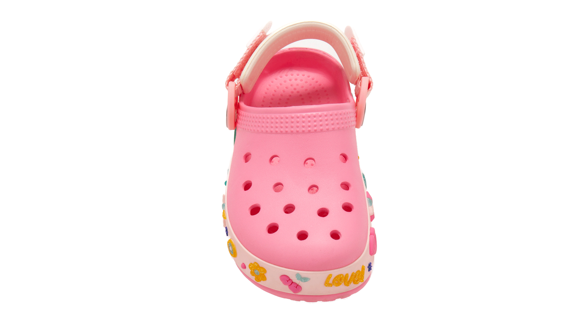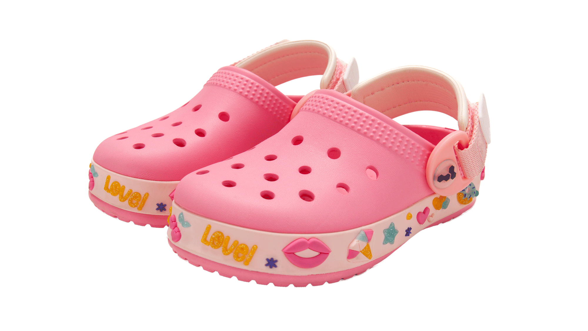 Los Zuecos LOVER combinan comodidad, estilo y diversión en un mismo calzado. Su diseño moderno con banda decorada en brillos y detalles coloridos lo convierte en la opción ideal para que los más chicos luzcan con personalidad en cualquier ocasión.